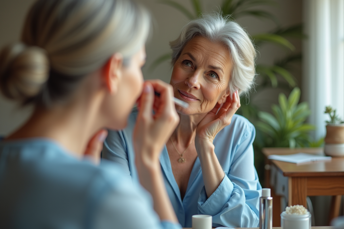 La lumière joue ici un rôle central. Une touche de fard clair ou d’enlumineur dans le coin externe œil agrandit le regard et accentue l’effet rajeuni. Pour celles qui aiment la discrétion, associer un eyeliner marron ou taupe avec un soupçon de mascara sur la frange supérieure suffit amplement. On obtient alors un œil lumineux, frais, sans surcharge.
